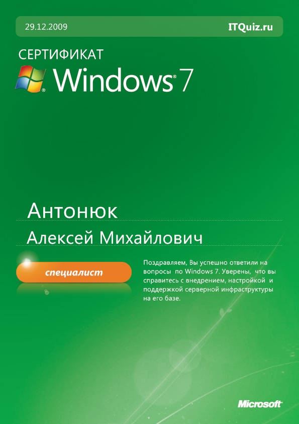 Специалист Windows 7 (Простой тест)Специалист Windows 7 (Простой тест)